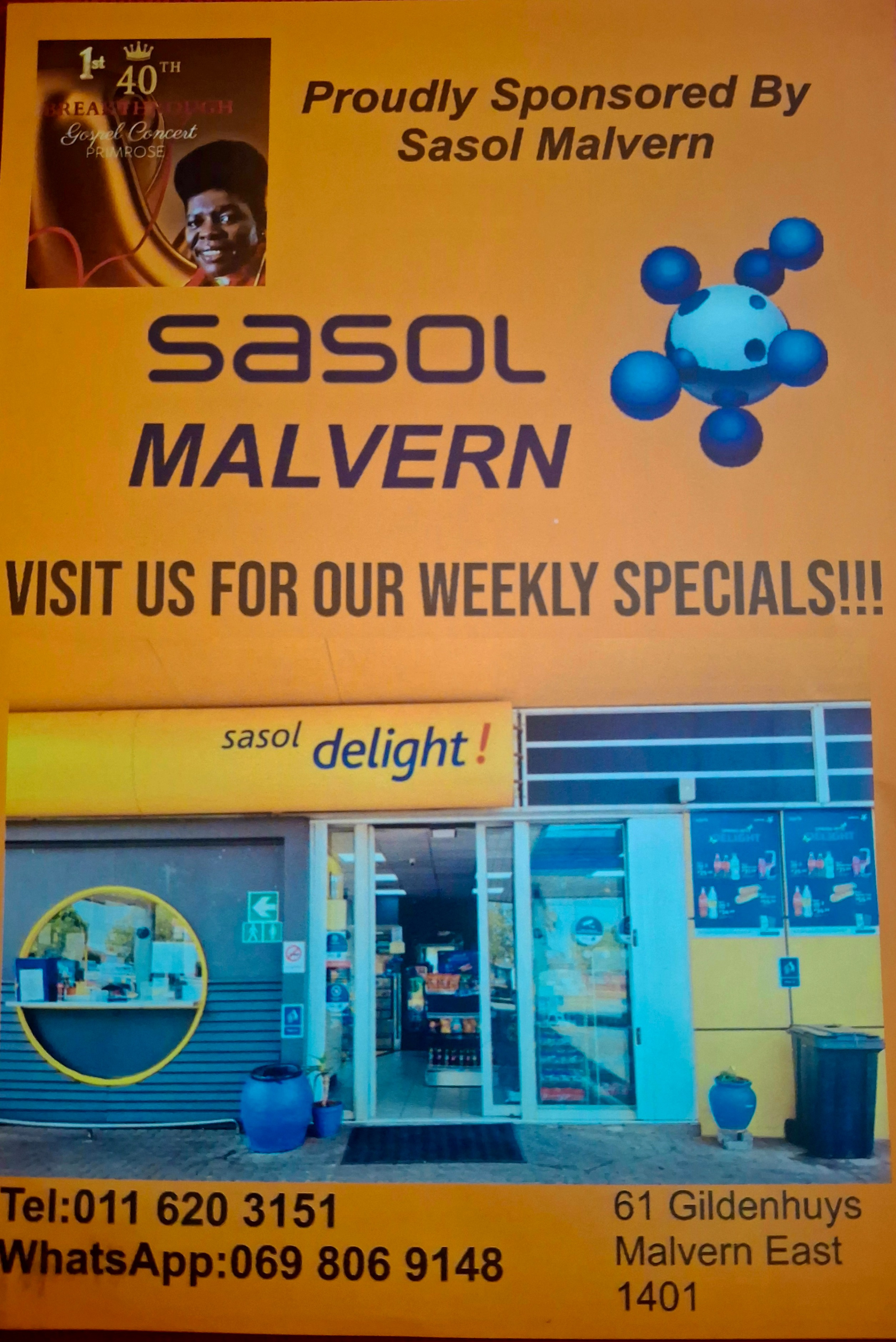 Sasol Garage in Malven the proud sponsor of 1st 40 Breakthrough Gospel Concert.